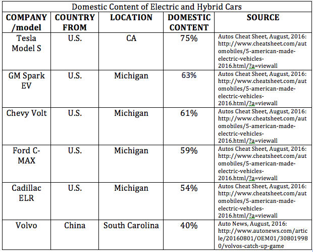 We are beginning to chart products that are high in U.S. domestic content and assembly.